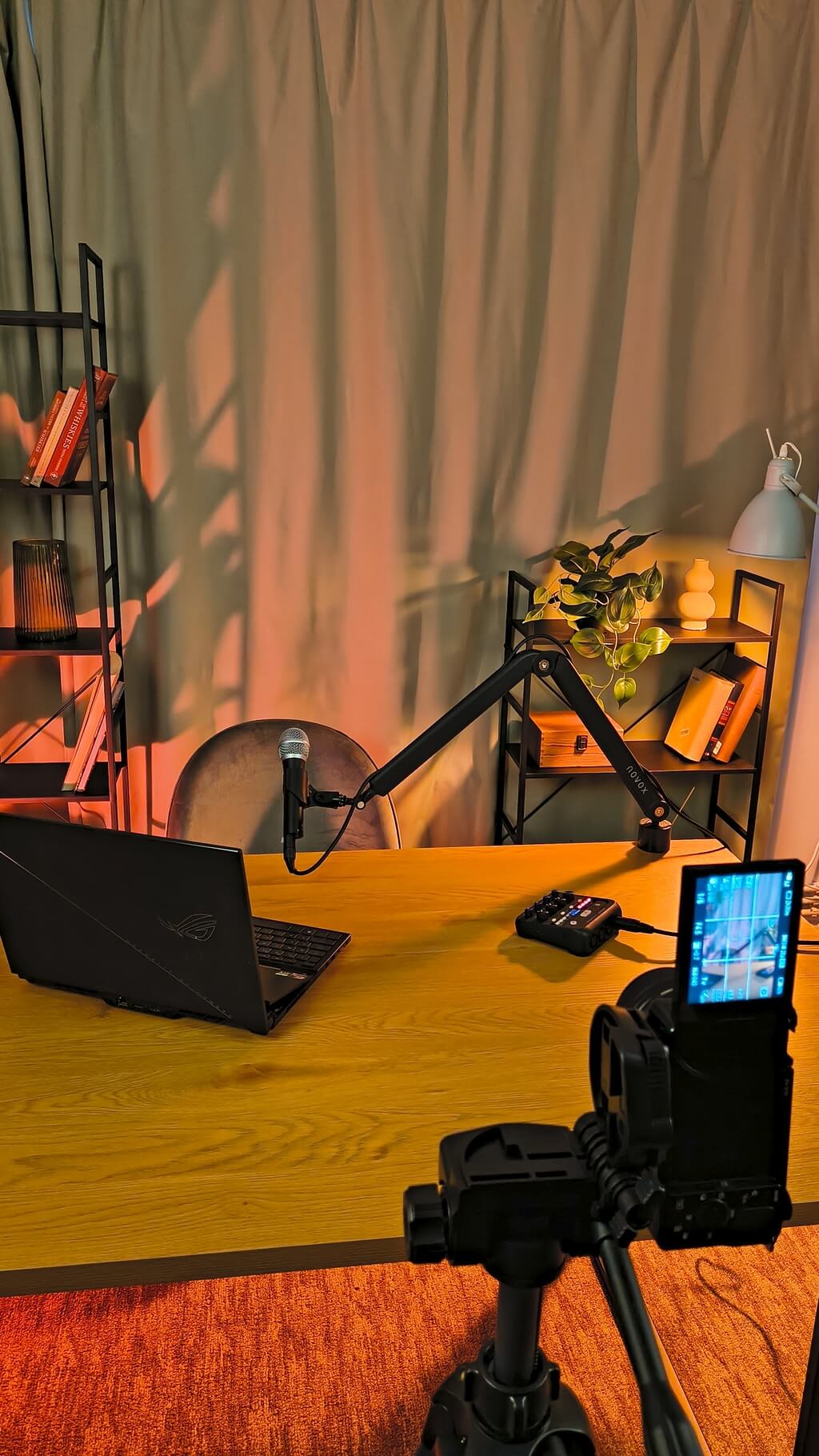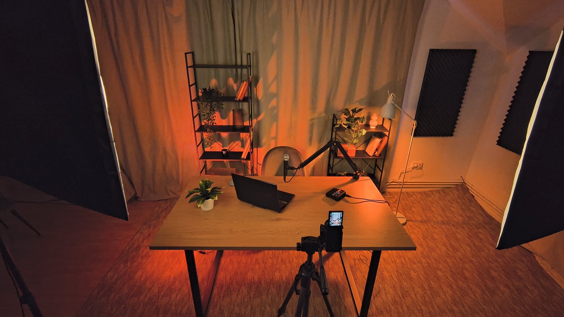Setup complet pentru discutii in grup, microfoane dedicate, cadru curat si sunet clar, ca episodul sa curga natural.